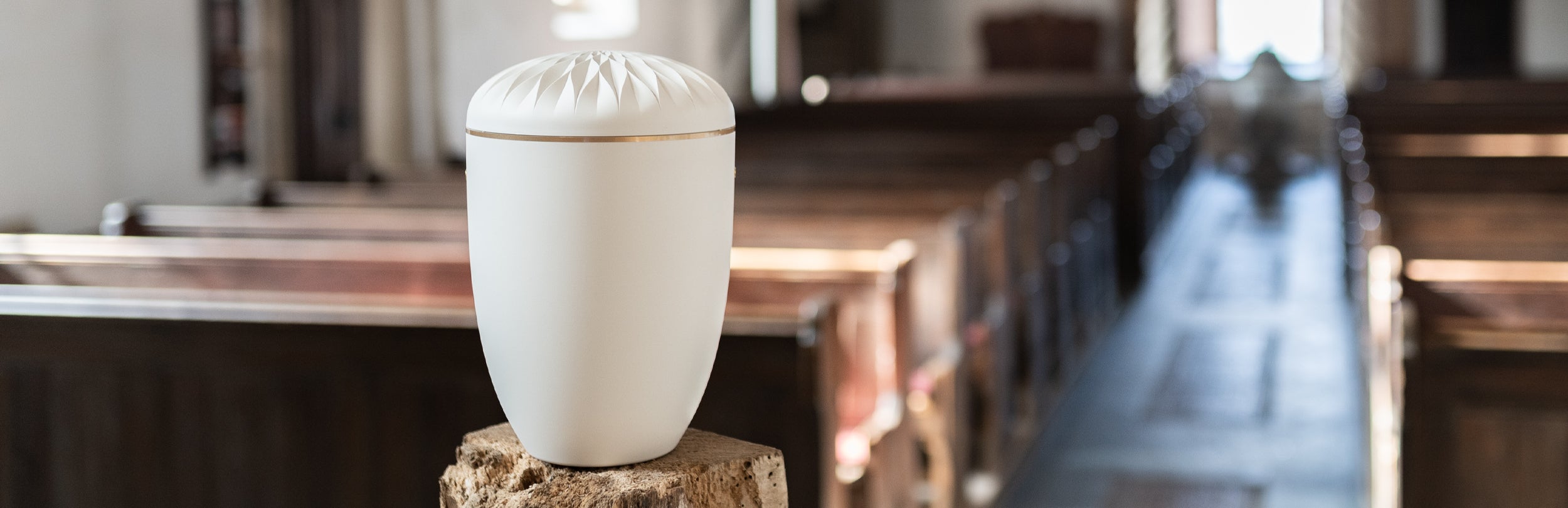 Reliefurne mit Dekor "Satinschmuck mit Perlen"